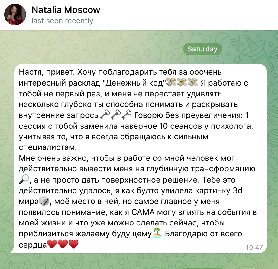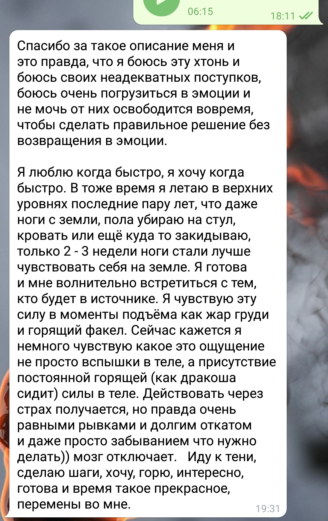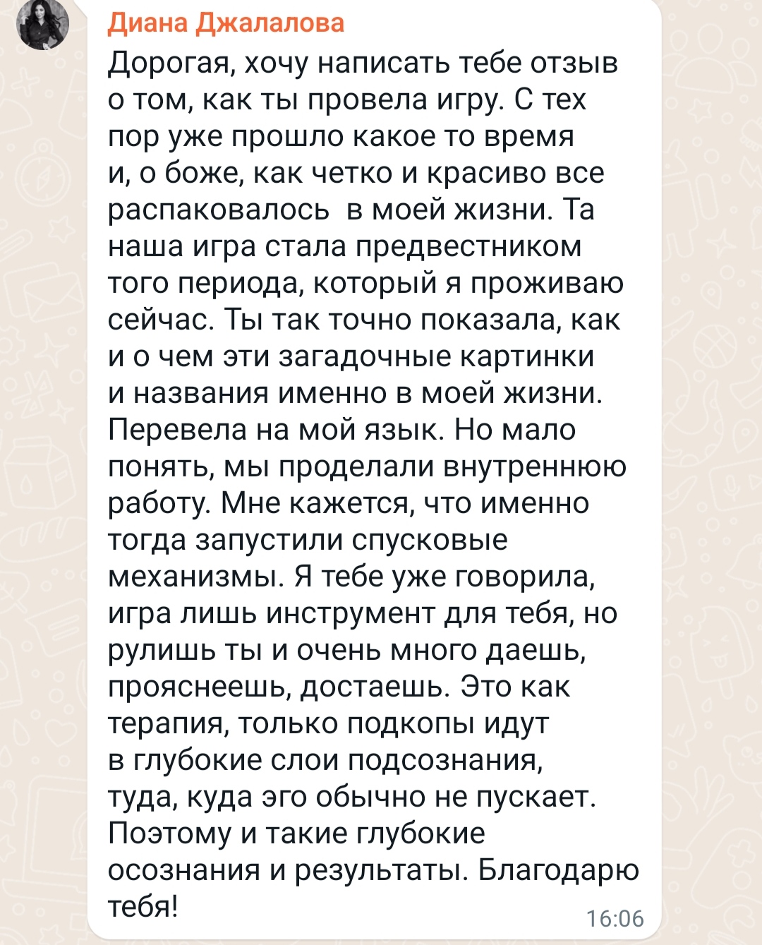 В своей помогающей практике я объединяю различные научно-доказанные и духовные знания, работаю в синтезе разных подходов и инструментов. Я обладаю талантом видеть суть - где на самом деле первопричина, проблема, слепая зона.
